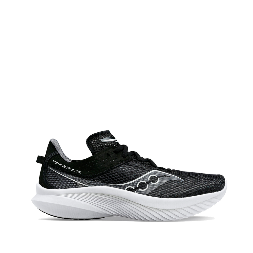 The Saucony Kinvara 14 women's running shoe is an ultralight running shoe designed for pace, freedom of movement, and a natural feel. With its responsive PWRRUN foam and 4mm drop, it's perfect for fast training runs, daily outings, and races up to the half marathon. Its breathable upper provides precise support while maintaining a lightweight feel underfoot.