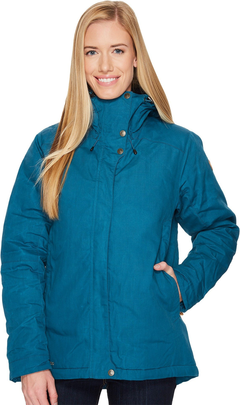 The Skogsö Padded Jacket for women by Fjällräven is a warm and durable jacket designed for winter outdoor activities. Its mid-length cut effectively protects against wind and light snow, while its high-performance synthetic insulation keeps you warm even in wet conditions. Ideal for hiking, trekking, or everyday wear in cold weather.