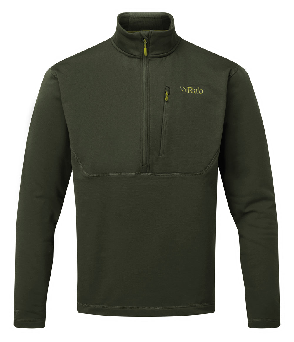 The Rab men's Geon Pull-On mid-layer is a lightweight, half-zip technical fleece ideal for active pursuits in cool weather. Its Thermic™ stretch fabric provides breathable insulation and exceptional comfort while allowing for a full range of motion. Versatile and packable, it can be used as a mid-layer or as a technical top for approaches or training.