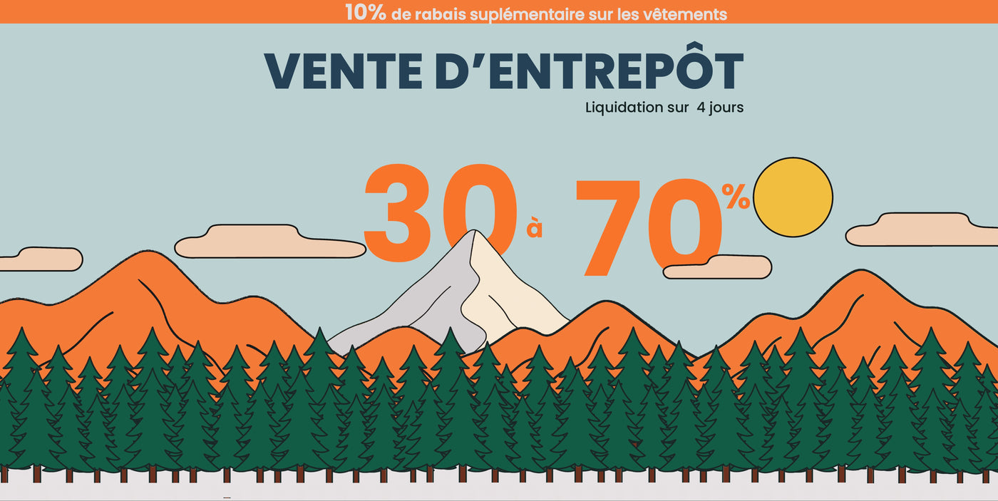 Marché Alpin is throwing open the doors of its warehouse for its biggest clearance sale of the season. For four days only, come and enjoy exceptional discounts of 30% to 70% on renowned outdoor brands, with an additional 10% discount on all clothing.