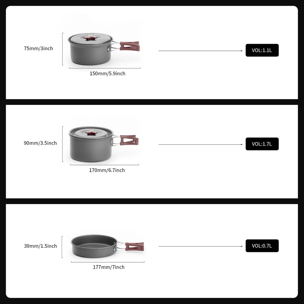 The Firemaple FMC-202 cookware set is designed for those looking for a complete, lightweight, and compact kitchen kit for their outdoor adventures. Made from hard-anodized aluminum, it offers excellent durability and efficient heat conductivity for quick meal preparation. With its insulated foldable handles and stackable design, it's easy to carry in a backpack, perfect for camping, hiking, and trekking.