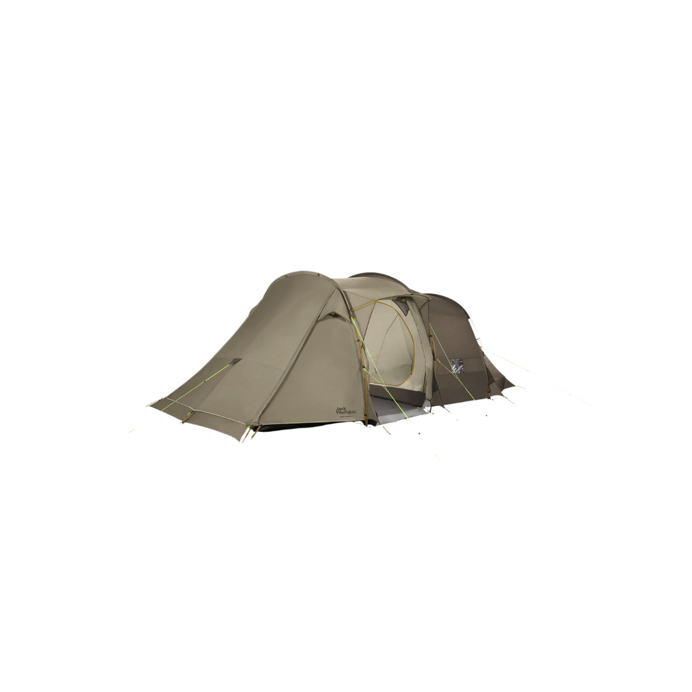 In good weather, the living space can be expanded even further. Simply roll up the front entrance or guy it up to create a covered veranda (fixing poles available separately). The tent has two additional entrances and four windows for more air and light.
