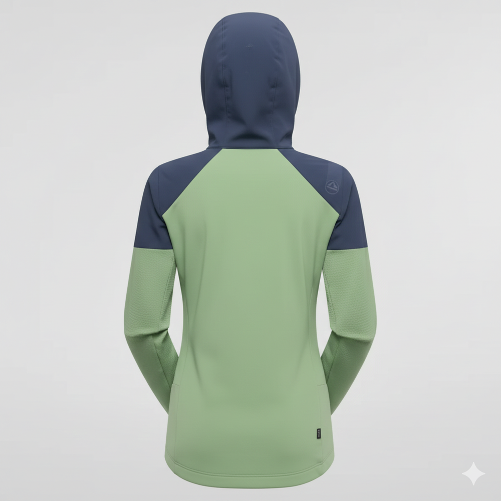 The La Sportiva Session Tech FZ HD Midlayer – Women's is designed for active mountain pursuits where breathability, freedom of movement, and heat management are essential. Technical and comfortable, it can be worn as a midlayer under a shell or on its own during sustained efforts in cool weather. Its ergonomic design and fitted hood make it a reliable companion for dynamic outings.