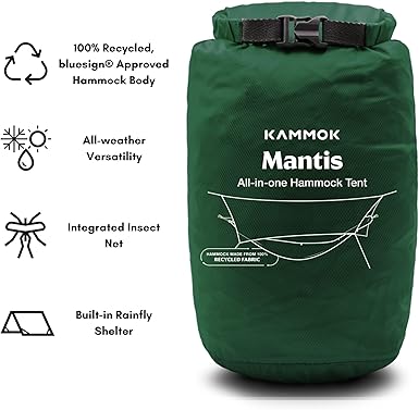 • All-in-one system: hammock, mosquito net, tarp, straps and tensioners included