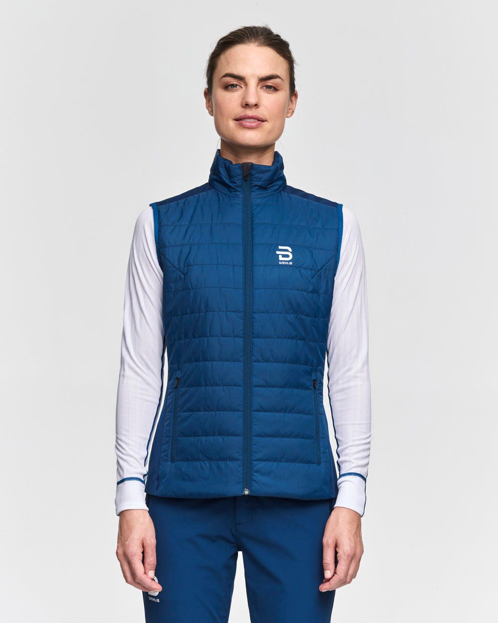 The Bjørn Dæhlie Women's Graphlite Vest is a lightweight, compressible, and insulated vest ideal for winter activities like cross-country skiing, hiking, or running in cold weather. It features synthetic insulation at the front for warmth and wind protection, while the stretch fabric back ensures excellent breathability and freedom of movement.