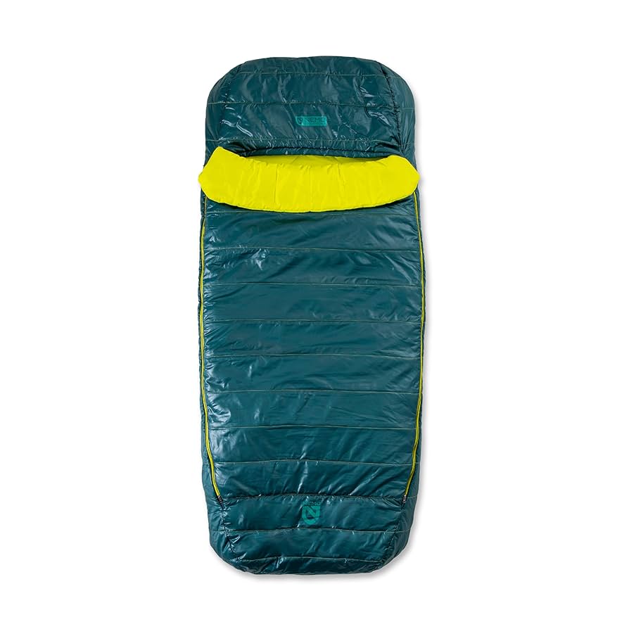 Le sac de couchage Jazz de Nemo est un modèle spacieux et confortable pensé pour le camping et le glamping. Sa forme rectangulaire large et son garnissage synthétique assurent liberté de mouvement et chaleur, tandis que sa conception modulable avec couette intégrée et drap lavable apporte une sensation proche du lit à la maison.
